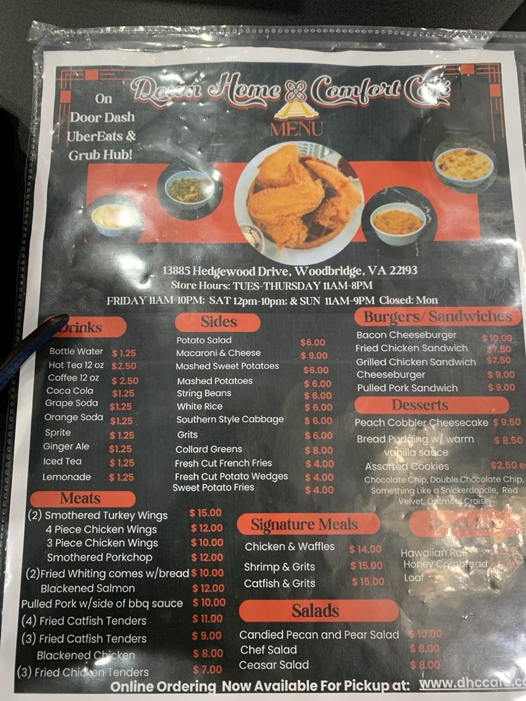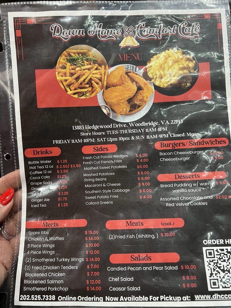 Down Home Comfort Café is a Southern gem located in Dale City, VA, offering a menu of authentic comfort and soul food dishes. The restaurant provides a cozy dining experience with friendly staff and a welcoming atmosphere. Customers rave about the perfectly cooked fish, flavorful cornbread, and delicious sides like collard greens and mac and cheese. The chicken and waffles, fish and grits, and peach cobbler cheesecake are also highly recommended. The restaurant is known for its excellent service, small but pleasant space adorned with Black-inspired artwork, and the love and care put into each dish. With options for takeout, delivery, and catering, Down Home Comfort Café truly delivers a soulful dining experience that will have you coming back for more.